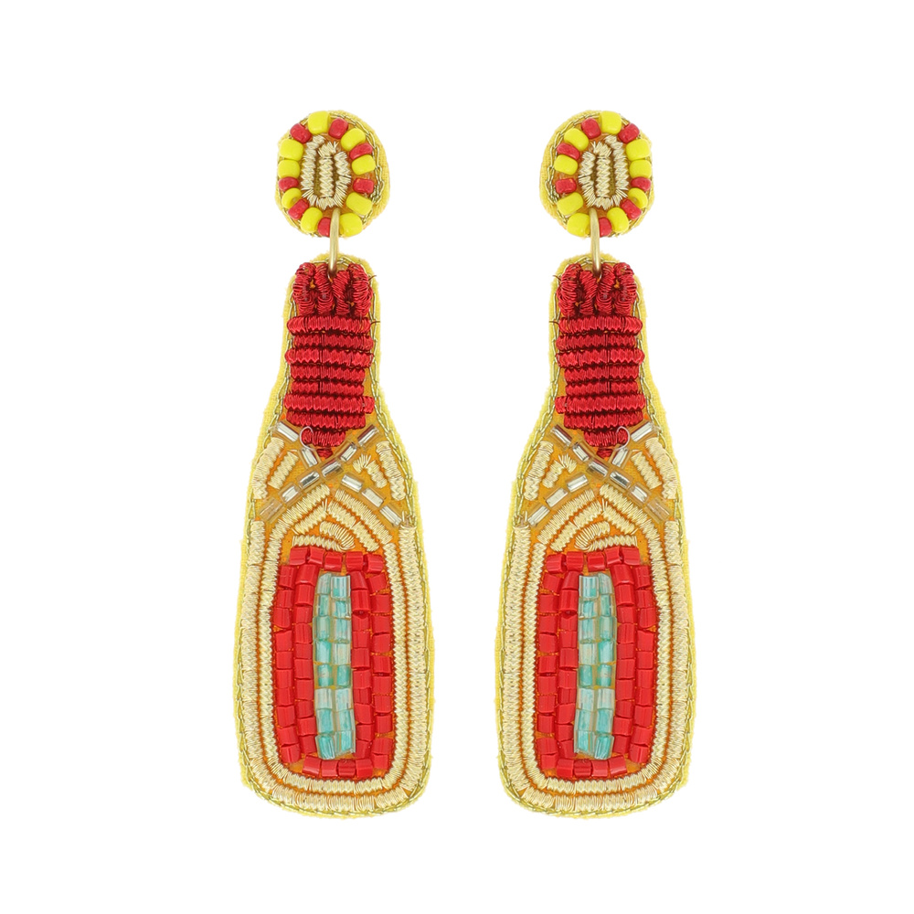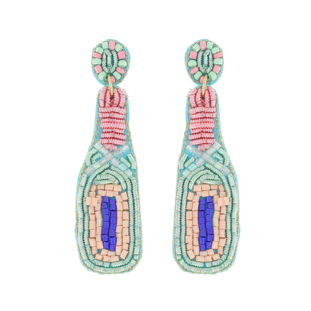 BEADED CELEBRATION CHAMPAGNE BOTTLE SEED BEAD EMBROIDERY DANGLE EARRINGS
