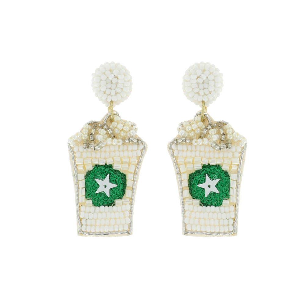 Beaded Starbucks Frappuccino Drink Coffee Cup Seed Bead Dangle Earrings