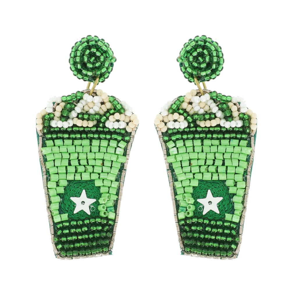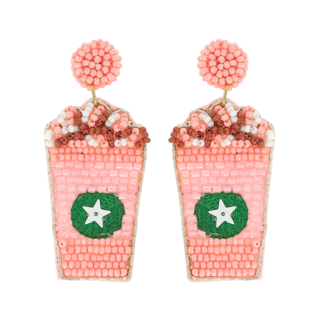Beaded Starbucks Frappuccino Drink Coffee Cup Seed Bead Dangle Earrings
