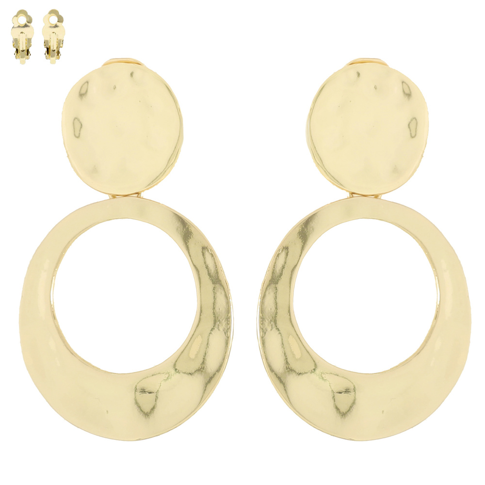 2-TIER BOHO IRREGULAR METAL OPEN CIRCLE CLIP-ON DROP EARRINGS