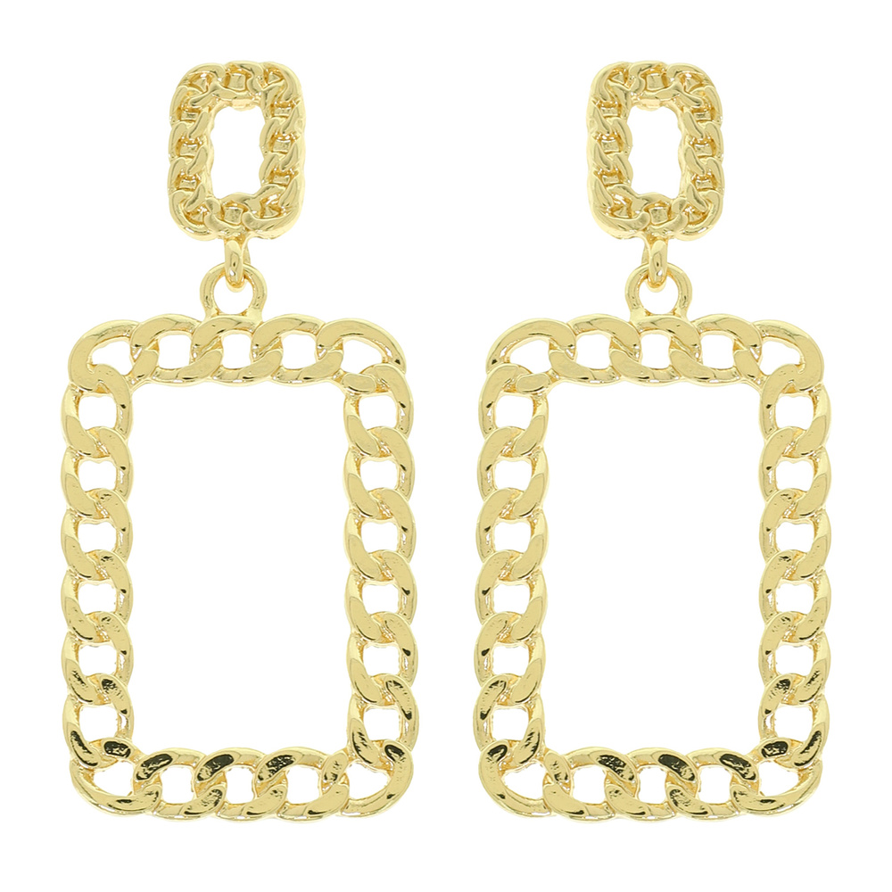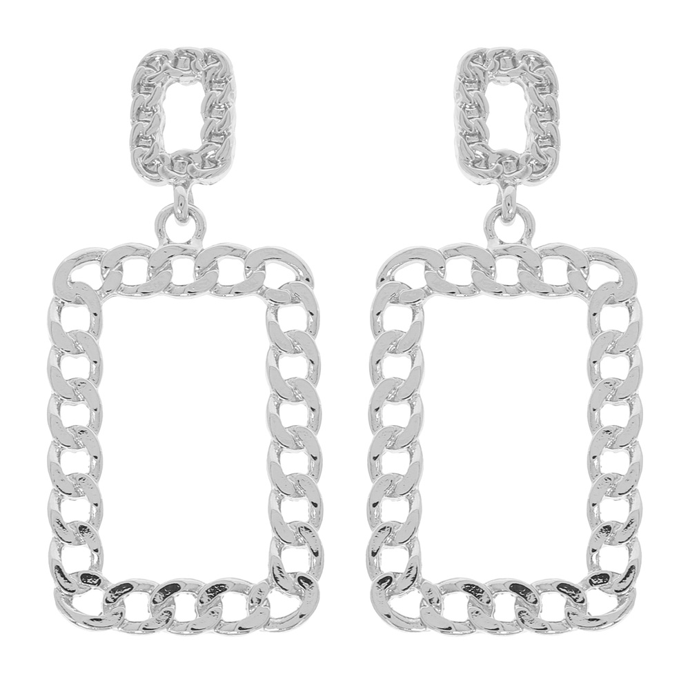 RECTANGLE LINK CHAIN DOOR KNOCKER POST DANGLE EARRINGS IN SILVER-TONE METAL
