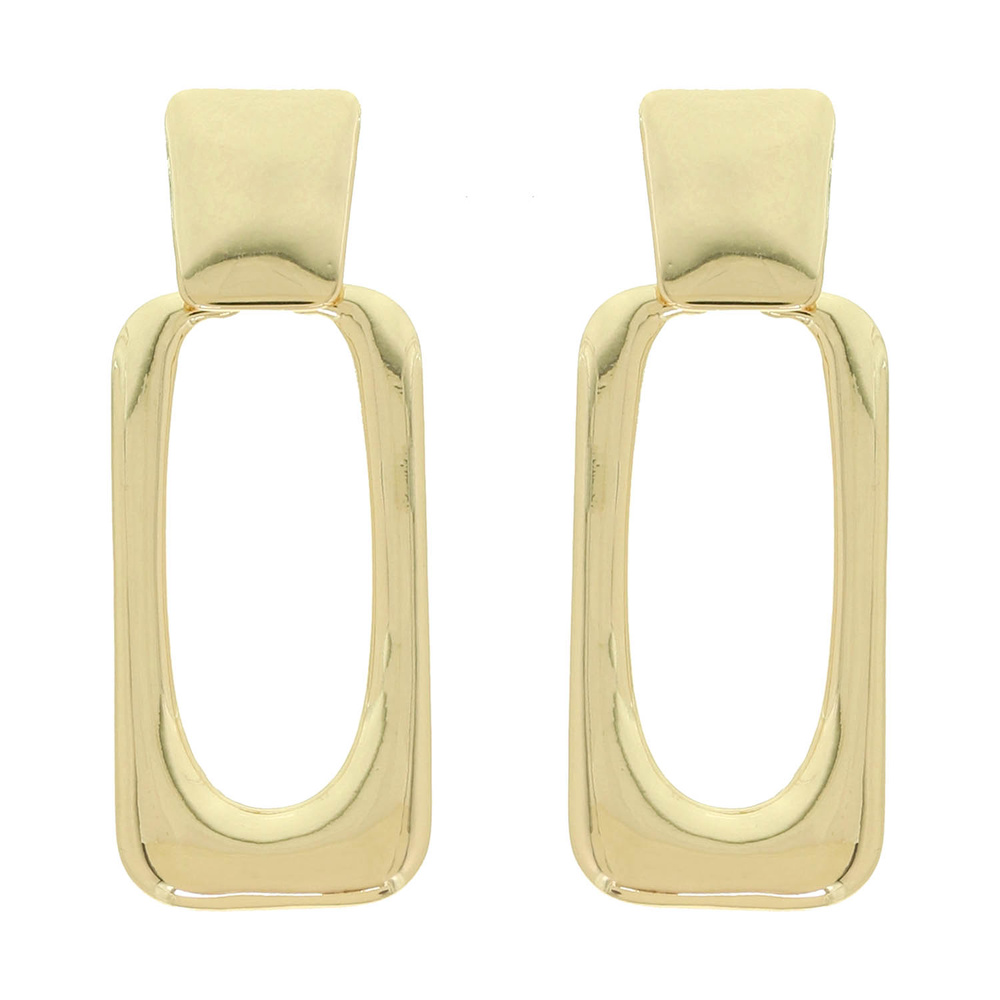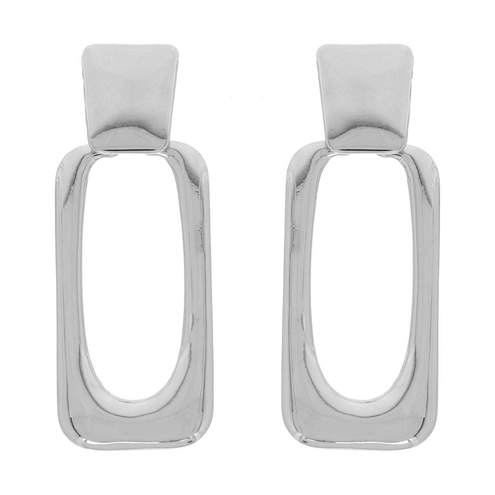 POLISHED RECTANGLE DOOR KNOCKER POST EARRINGS IN SILVER-TONE METAL