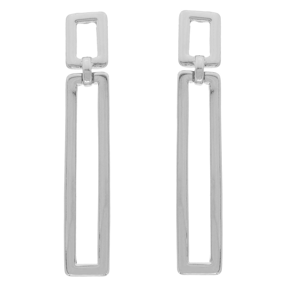 POLISHED OBLONG RECTANGLE DOOR KNOCKER POST EARRINGS IN SILVER TONE METAL