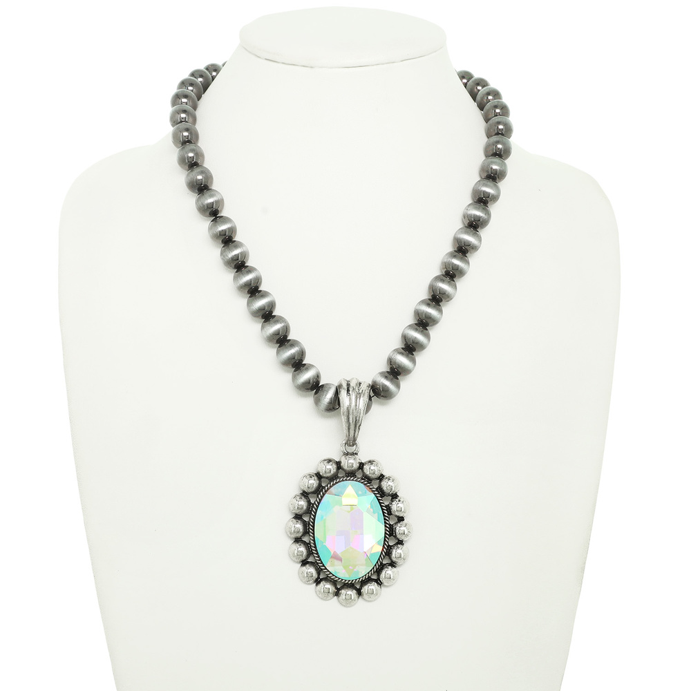 WESTERN OVAL CRYSTAL PENDANT NAVAJO PEARL BEAD NECKLACE