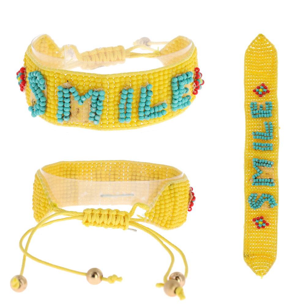 Smile -handmade Positive Affirmations Beaded Adjustable Pull Cord Bracelet
