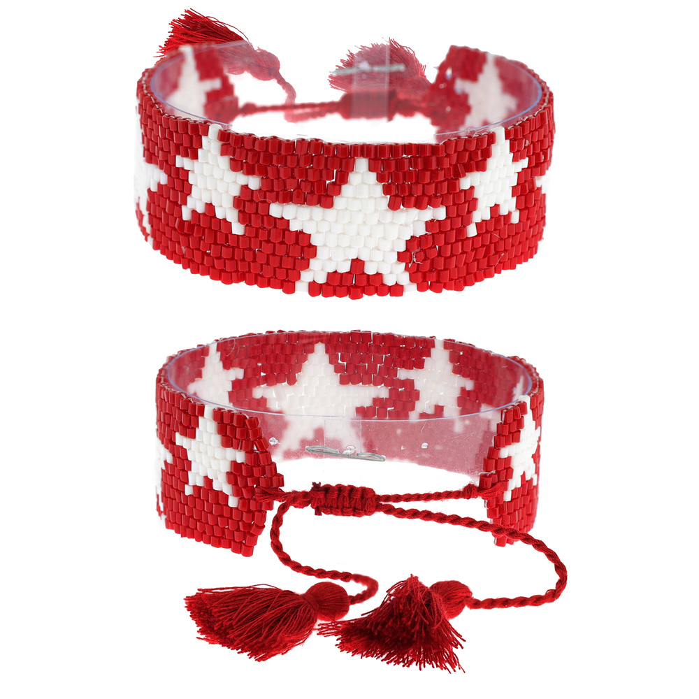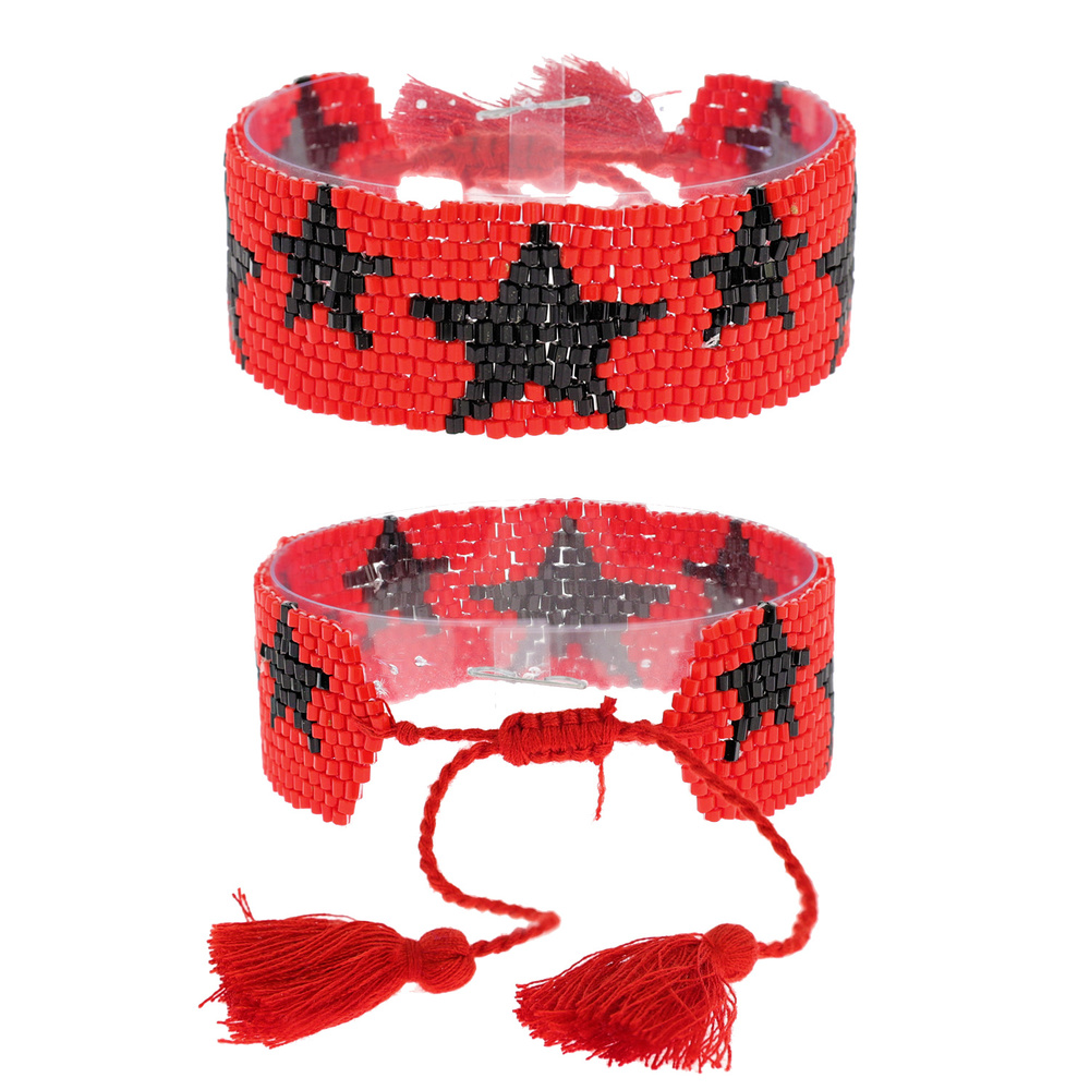 Handmade Beaded Star Pattern Adjustable Tassel Pull Cord Bracelet