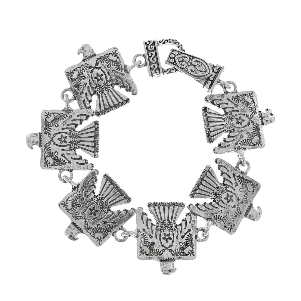 THUNDERBIRD WESTERN NATIVE AMERICAN MAGNETIC SNAP LOCK CLOSURE BRACELET IN SILVER TONE OXIDIZED METAL