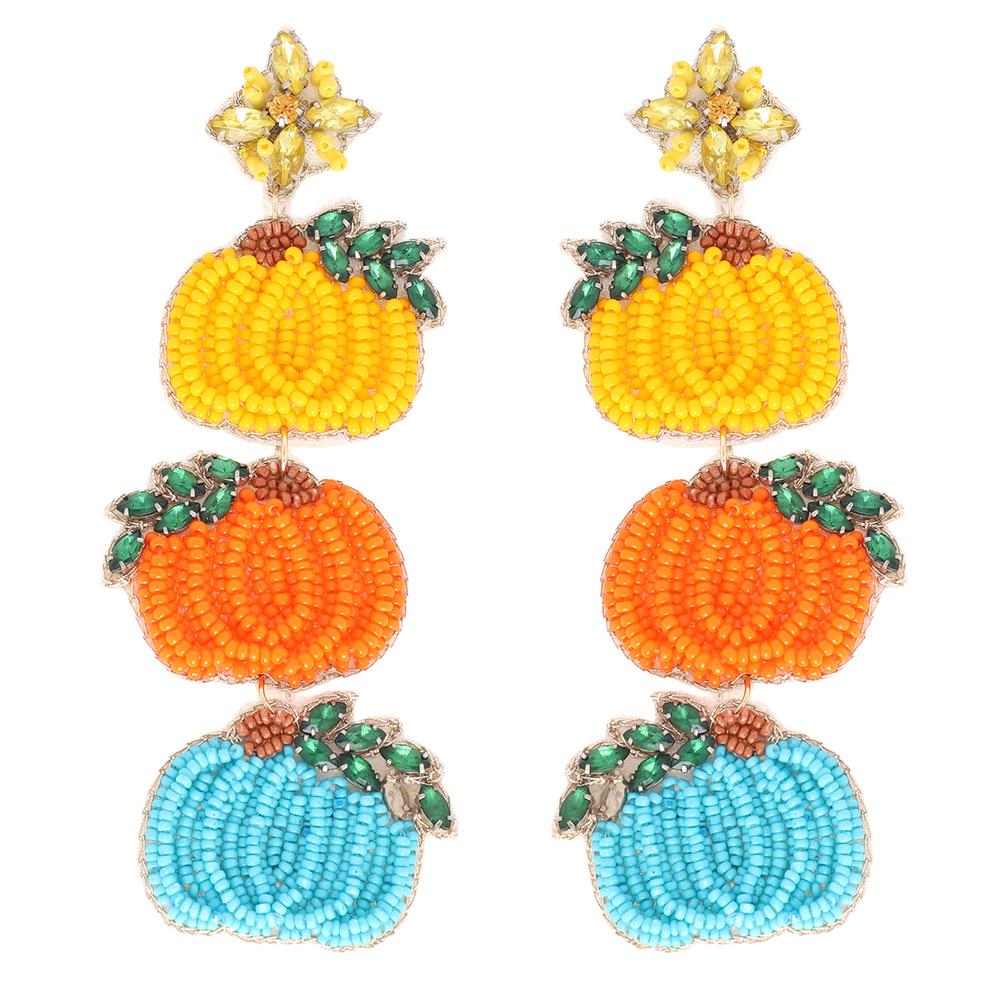 4-tier Autumn Pumpkin Beaded Long Drop Earrings