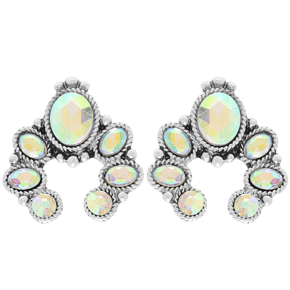 CRYSTAL SQUASH BLOSSOM POST EARRINGS IN OXIDIZED SILVER-TONE METAL