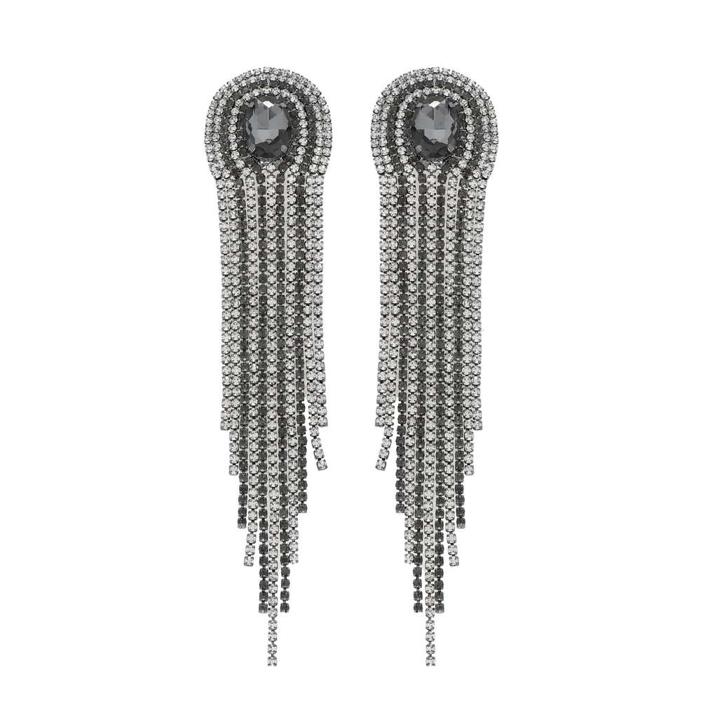 Crystal Rhinestone Arch Tassel Long Drop Earrings