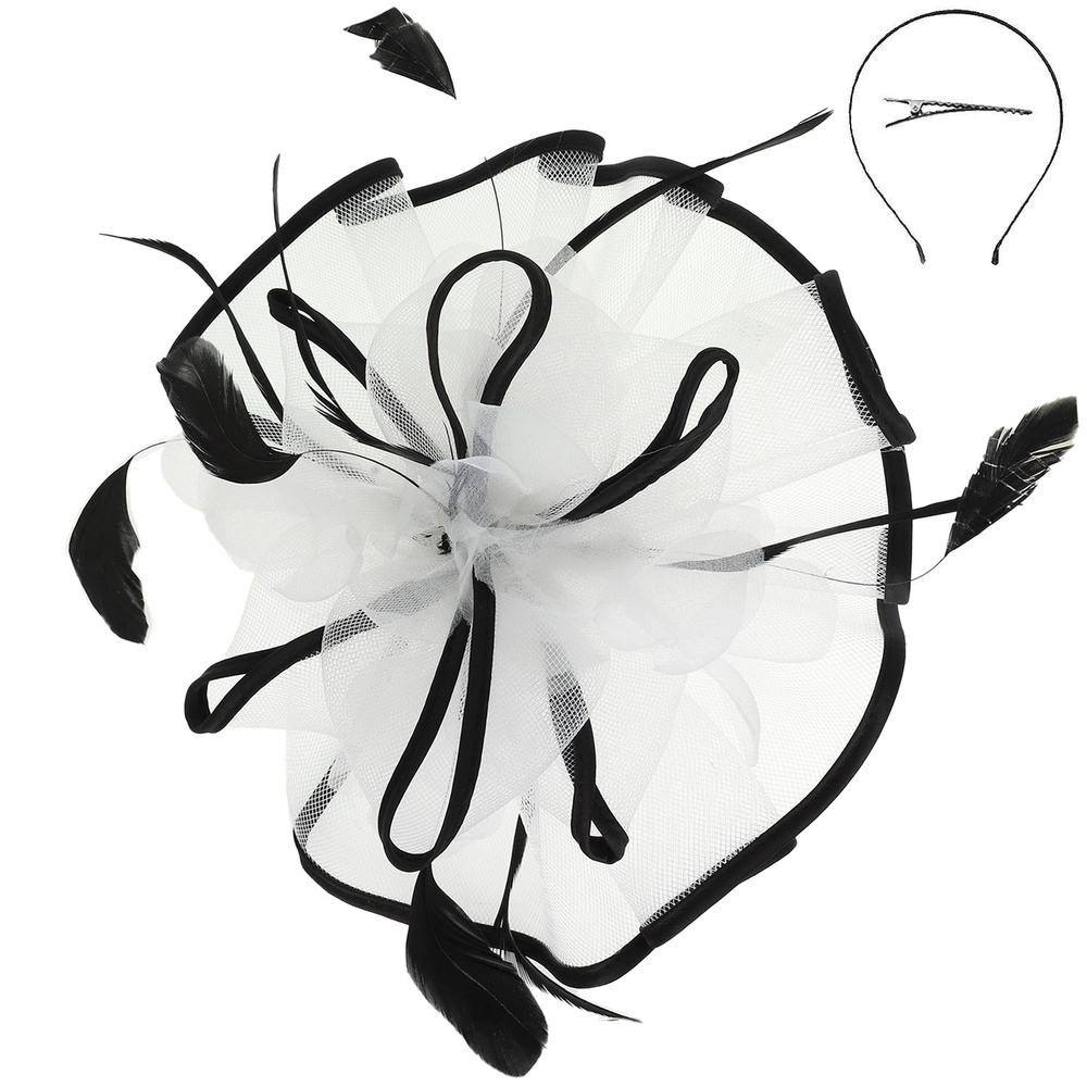 FLORAL FEATHERED MESH FASCINATOR WITH CLIP AND HEADBAND