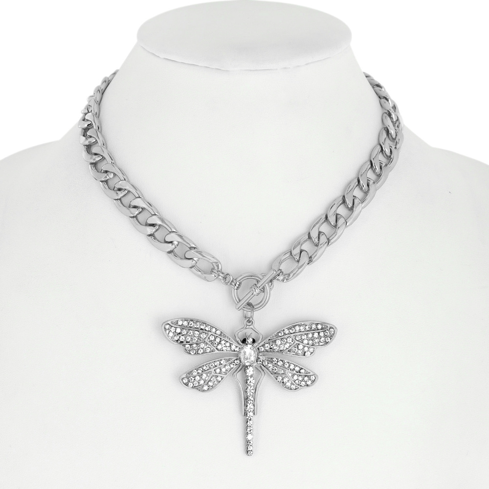 Fashion Rhinestone Dragonfly Pendant Toggle Necklace