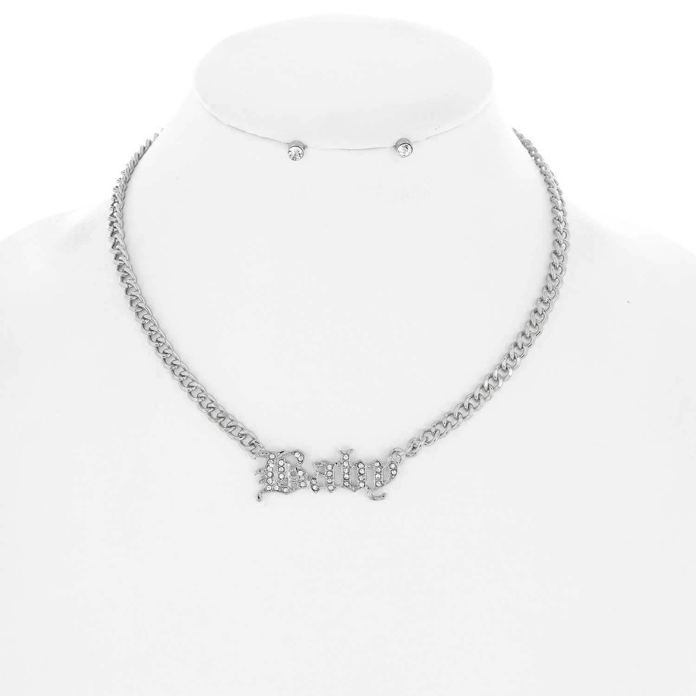 Rhinestone Pave Baby Cuban Link Chain Necklace And Crystal Stud Earring Set