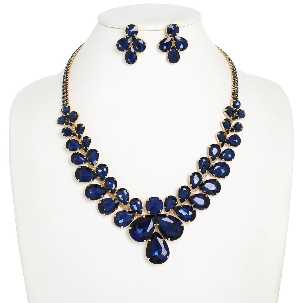 Crystal Gemstone V-shaped Teardrop Necklace Set