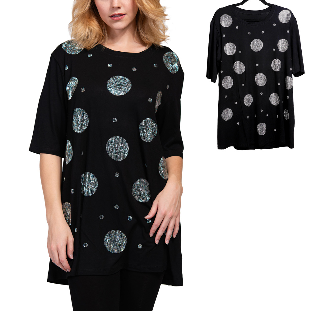 Crystal Rhinestone Circle Design Graphic Tshirt