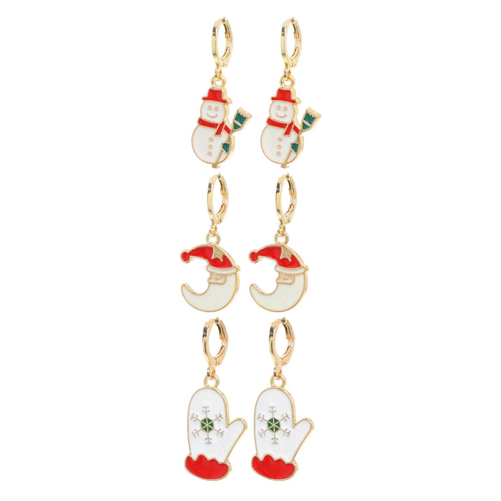 3-pair Assorted Christmas Charm Hoop Earring Set