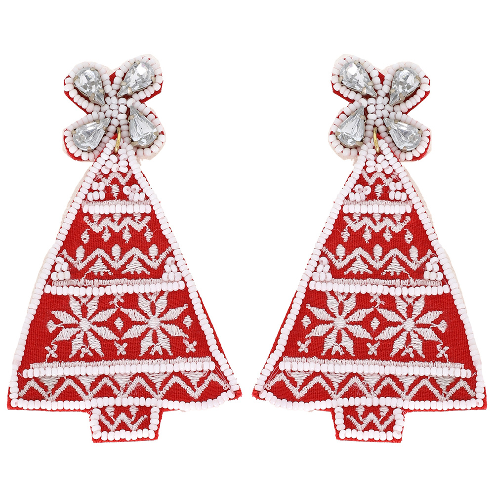 Jeweled Fair Isle Christmas Tree Beaded Earrings