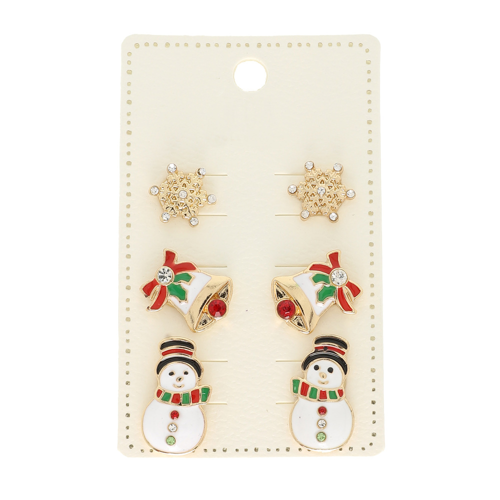 CHRISTMAS BELLS STAR SNOWMAN EPOXY RHINESTONE POST EARRINGS
