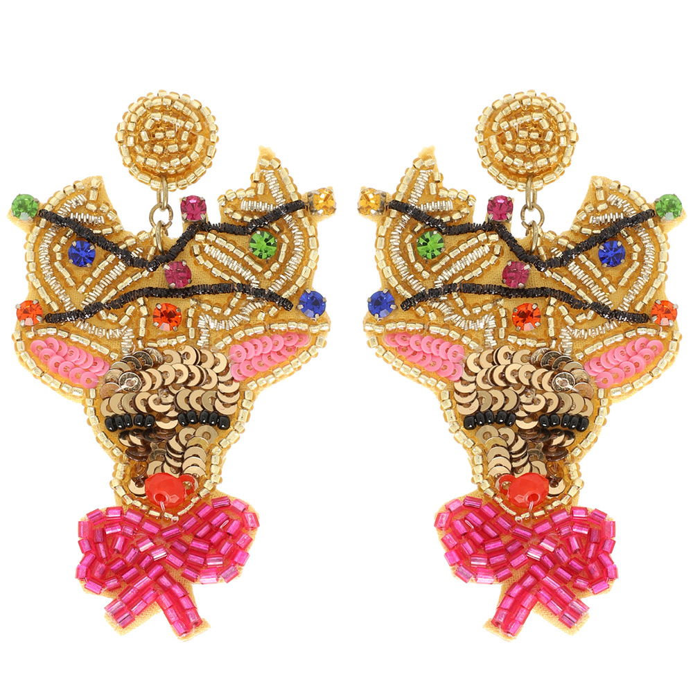 THE RED NOSE REINDEER SEED BEAD SEQUINS CRYSTAL EMBROIDERED LONG DROP EARRINGS