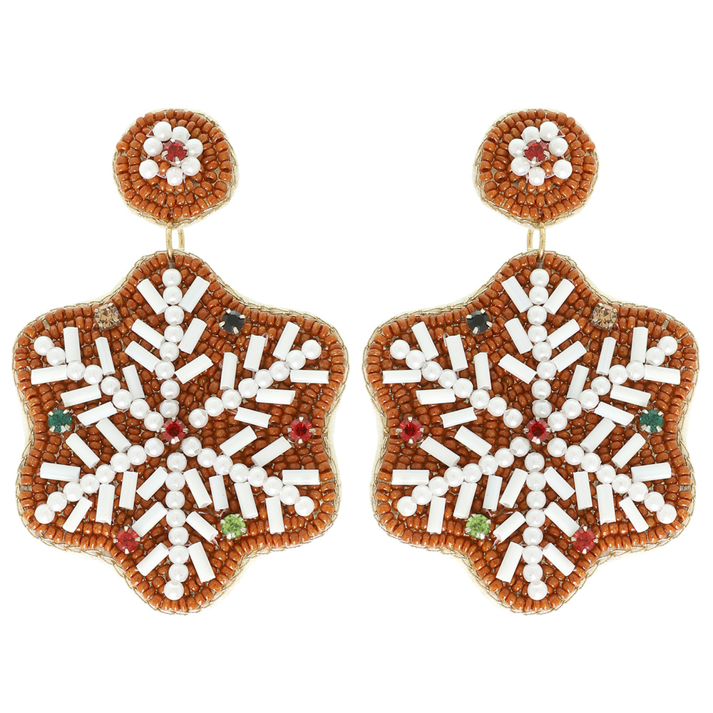 RHINESTONE BEAD EMBELLISHED SNOWFLAKE POST DANGLE EARRINGS