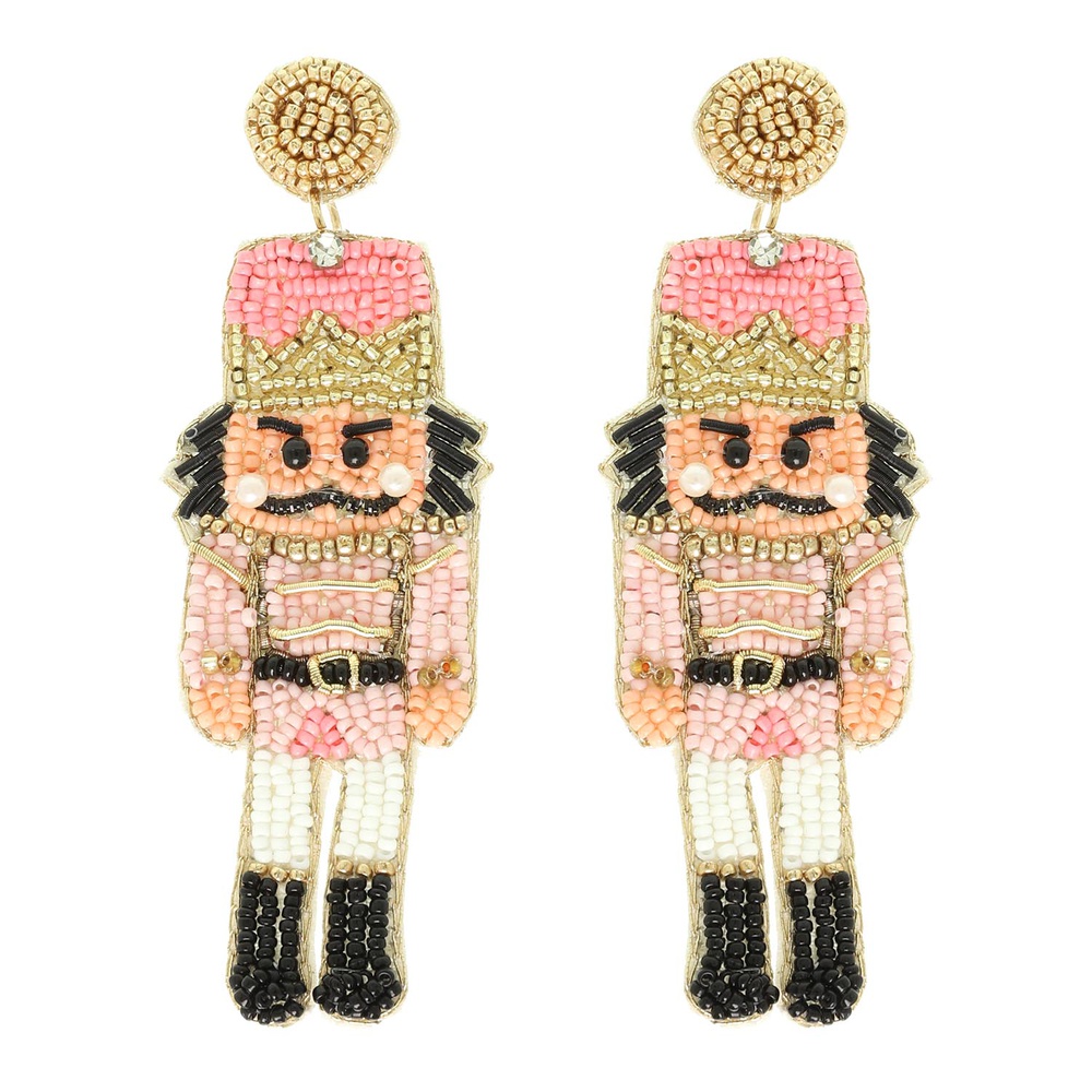 CHRISTMAS NUTCRACKER SEED BEADED POST DANGLE EARRINGS WITH CRYSTAL ACCENTS