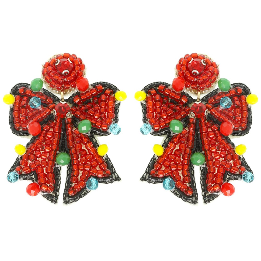 CHRISTMAS LIGHTS ADORN BOW SEED BEADED POST DANGLE EARRINGS WITH CRYSTAL ACCENTS