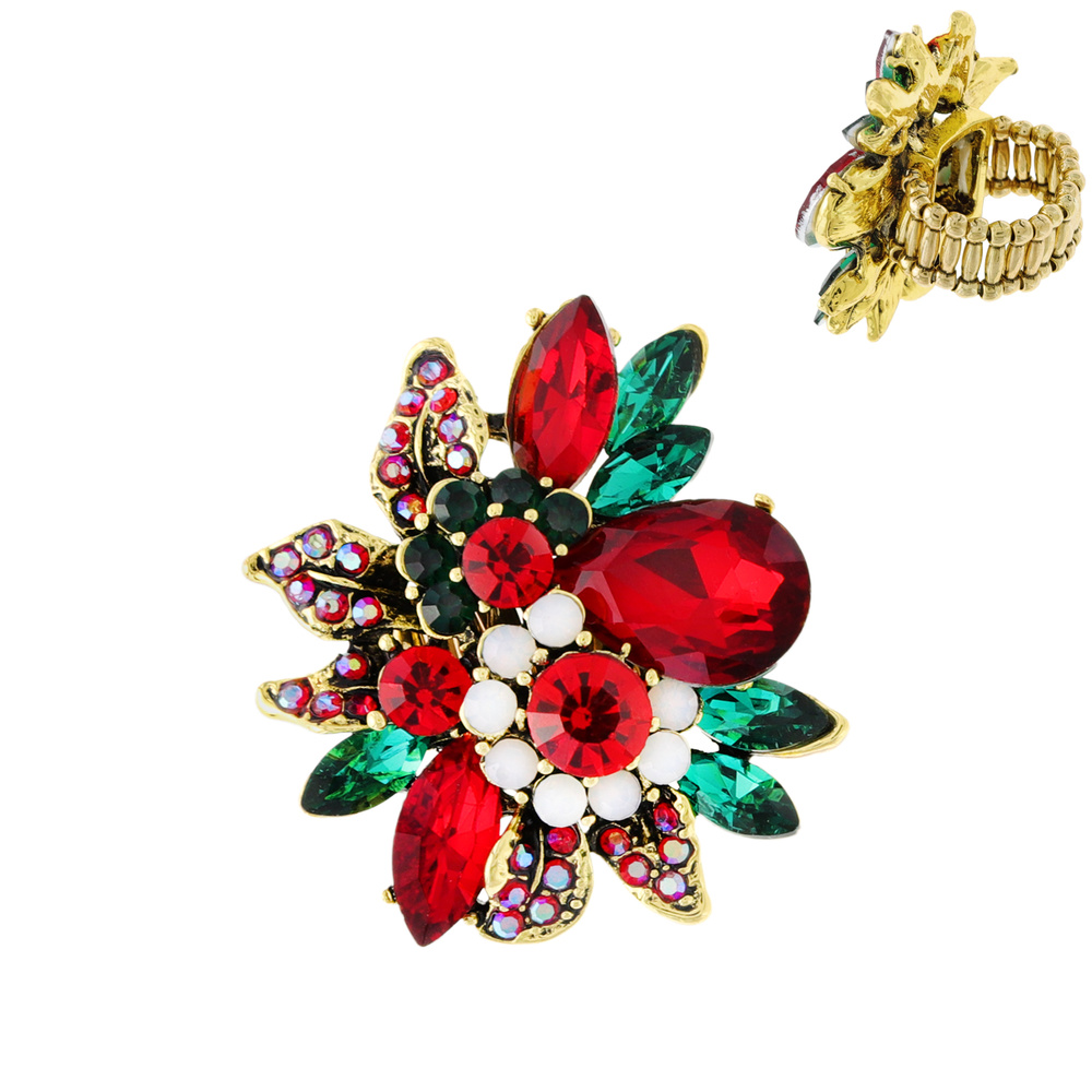 RHINESTONE CHRISTMAS FLOWER STRETCH RING