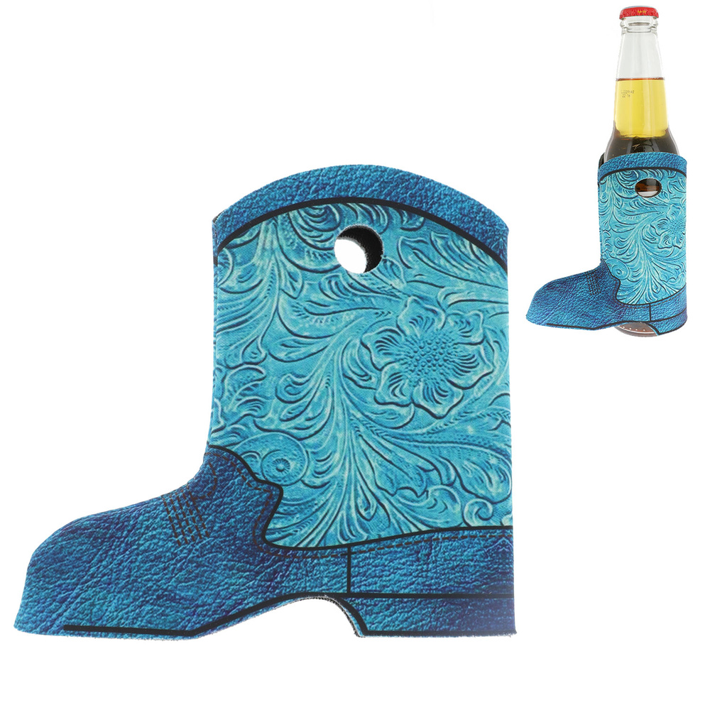 Embossed Leather-western Drinking Cowboy Boot Insulated Cooler And Beer Holder