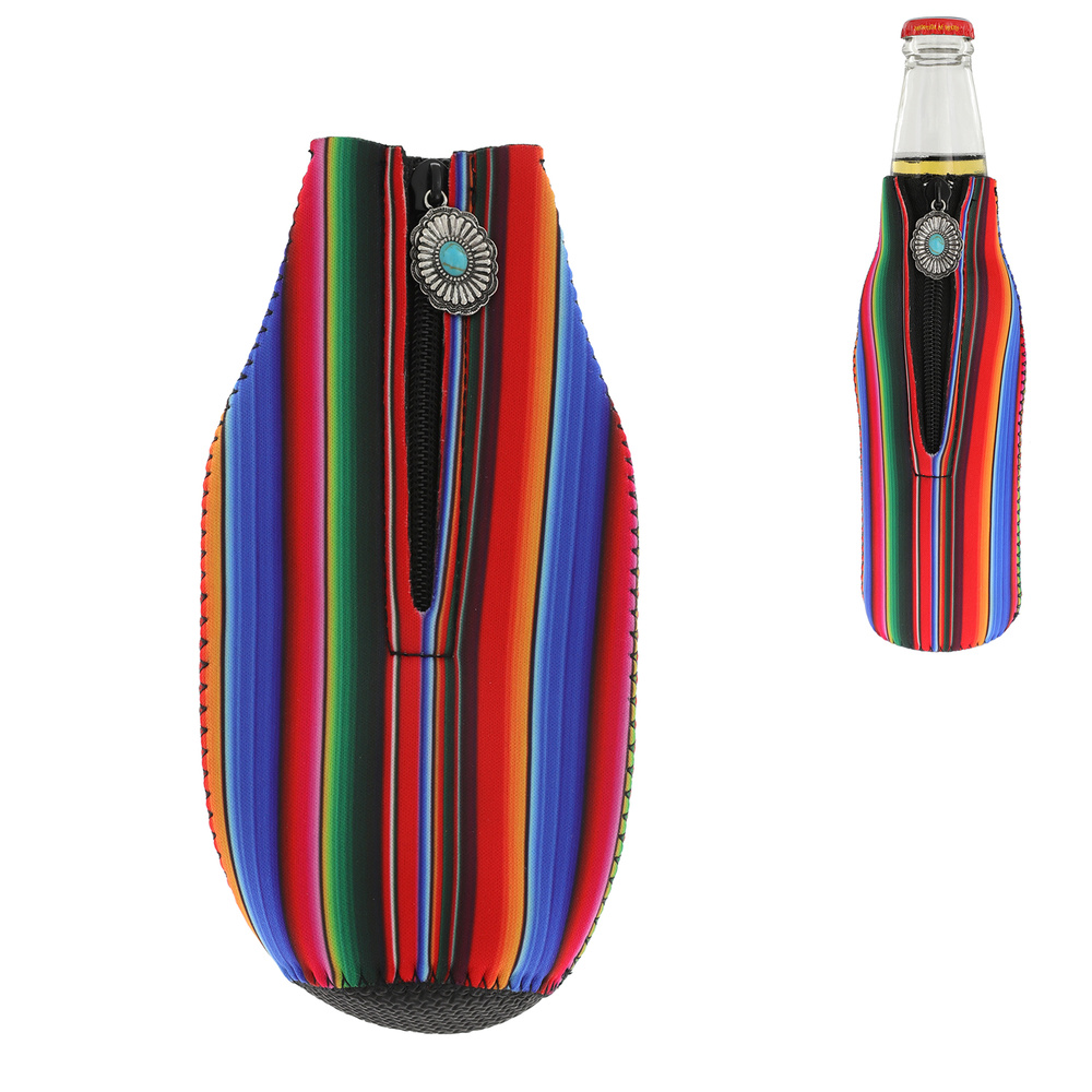 Serape/cowhide/embossed Leather-turquoise Concho Western Drinking Sleeve Insulated Bottle Holder