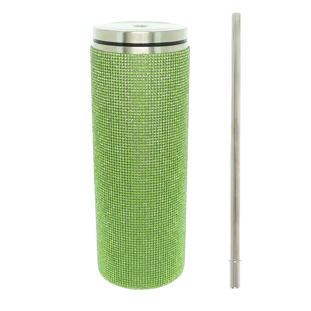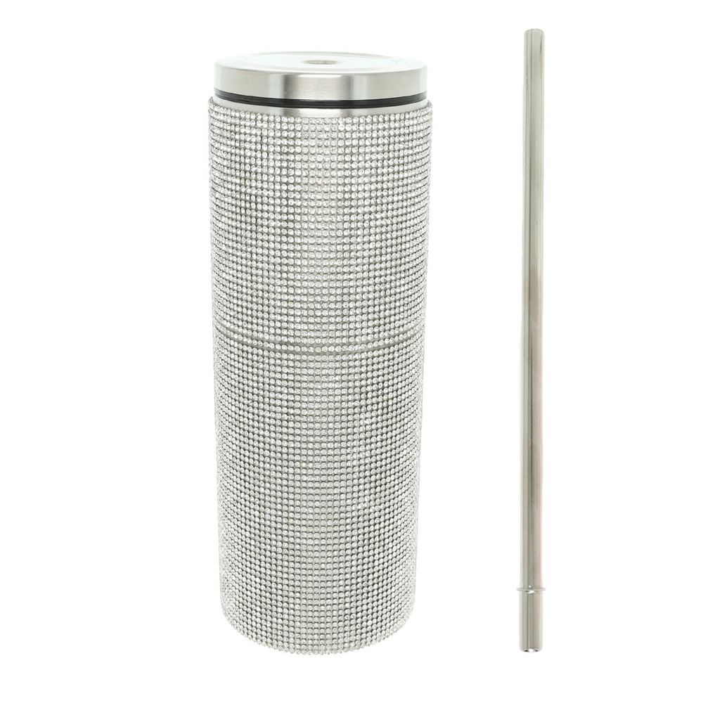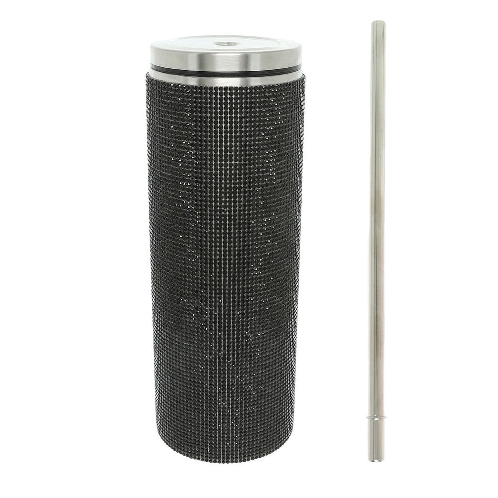 RHIINESTONE ENCRUSTED STAINLESS STEEL TUMBLER WITH STRAW