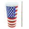 USA FLAG THEMED DESIGN CRYSTAL PAVE STAINLESS STEEL DOUBLE WALL TUMBLER WITH STRAW AND LID