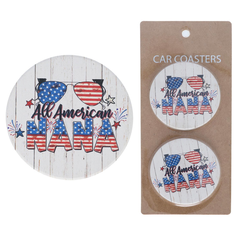2-piece Patriotic All American Nana Car Coasters