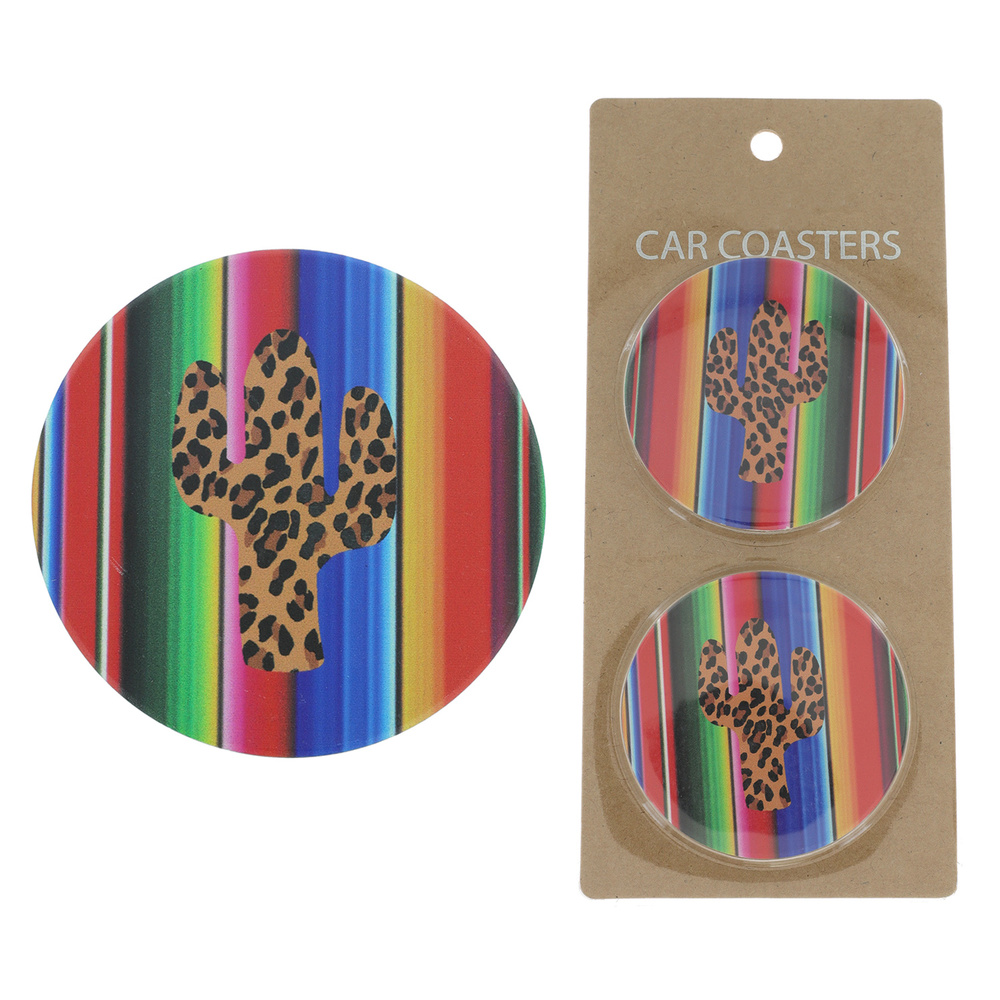 Serape Cactus - 2-piece Western Animal Print Cork Base Ceramic Absorbent Car Coaster Set