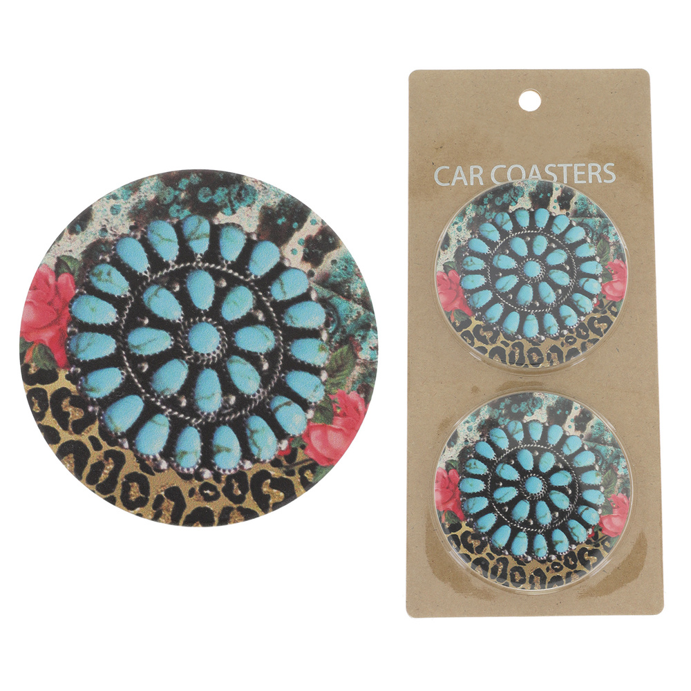 2-piece Western Animal Print Stone Concho Cork Base Ceramic Absorbent Car Coaster Set