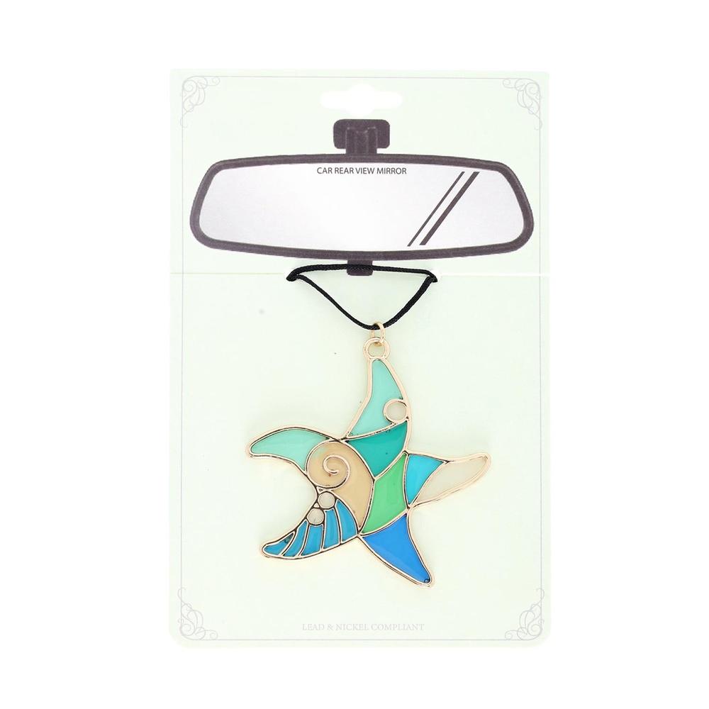 STAINED GLASS MULTICOLOR STARFISH ENAMEL COATED REAR VIEW MIRROR HANGING CAR ORNAMENT