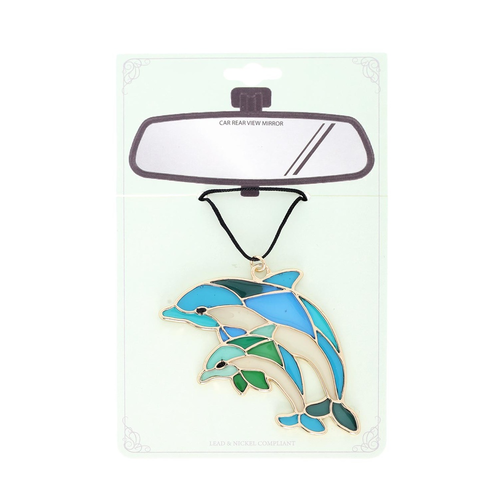STAINED GLASS MULTICOLOR DOLPHIN ENAMEL COATED REAR VIEW MIRROR HANGING CAR ORNAMENT