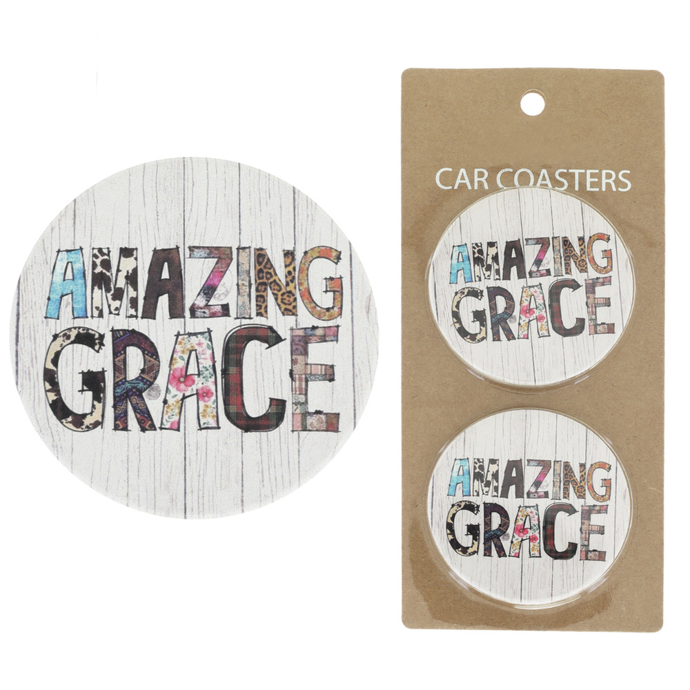 2-piece Amazing Grace Cork Base Ceramic Absorbent Cup Holder Car Coaster Set