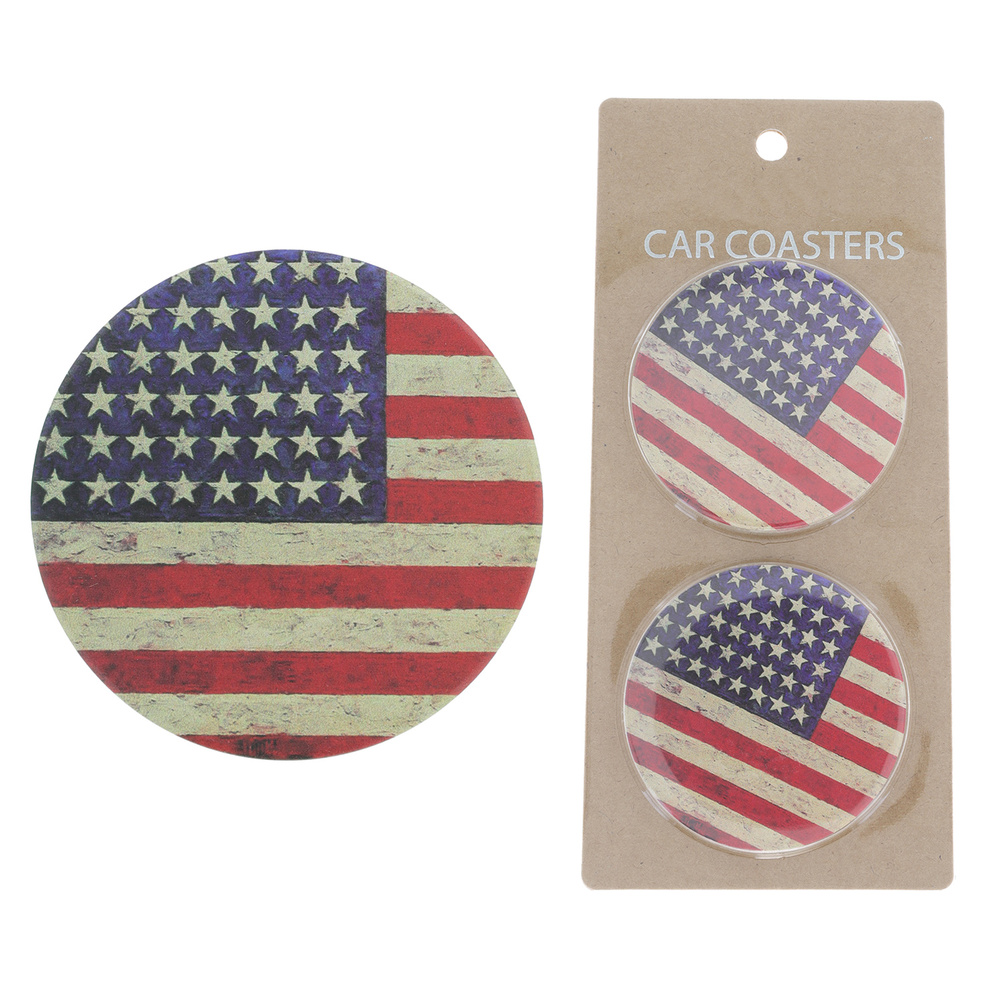 2-piece American Usa Flag Patriotic Cork Base Ceramic Absorbent Car Coaster Set