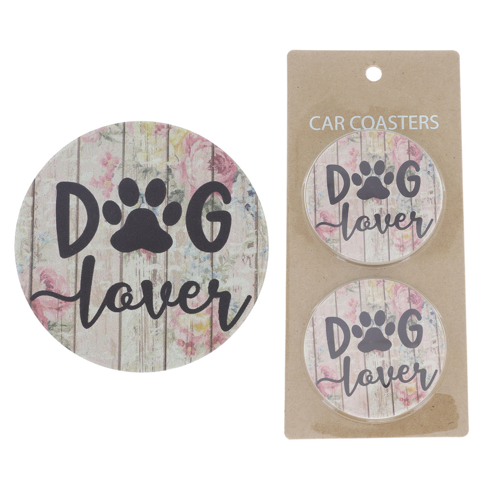 2-piece Dog Lover Cork Base Ceramic Absorbent Car Coaster Set