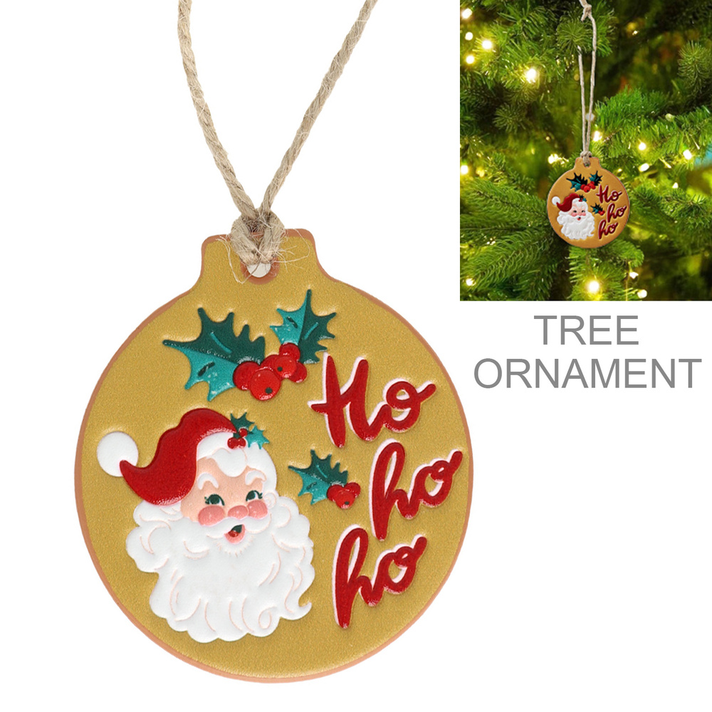 SANTA CLAUS "HO HO HO" TOOLED LEATHER TREE ORNAMENT