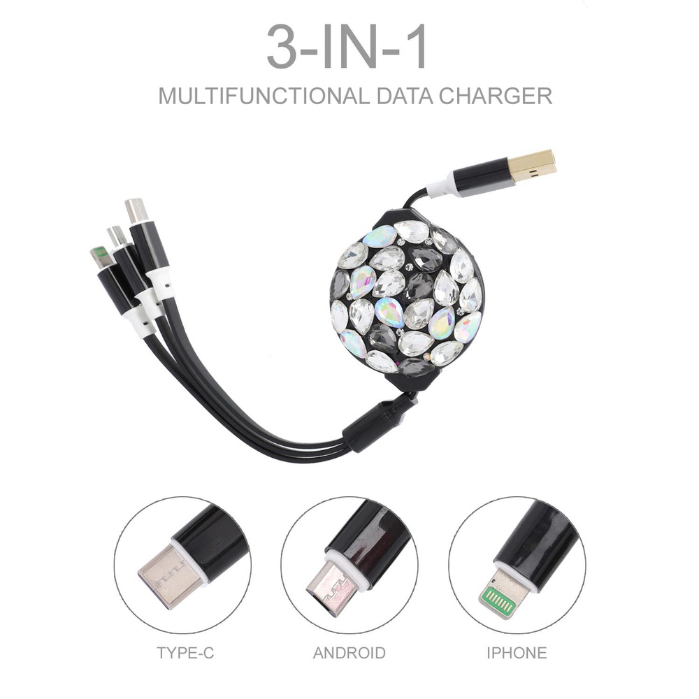 3 In 1 Universal Fast Charging Usb Retractable Cable Iphone/android/type-c Usb