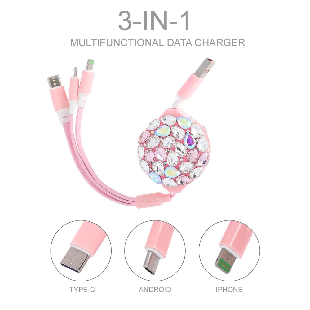 3 In 1 Universal Fast Charging Usb Retractable Cable Iphone/android/type-c Usb