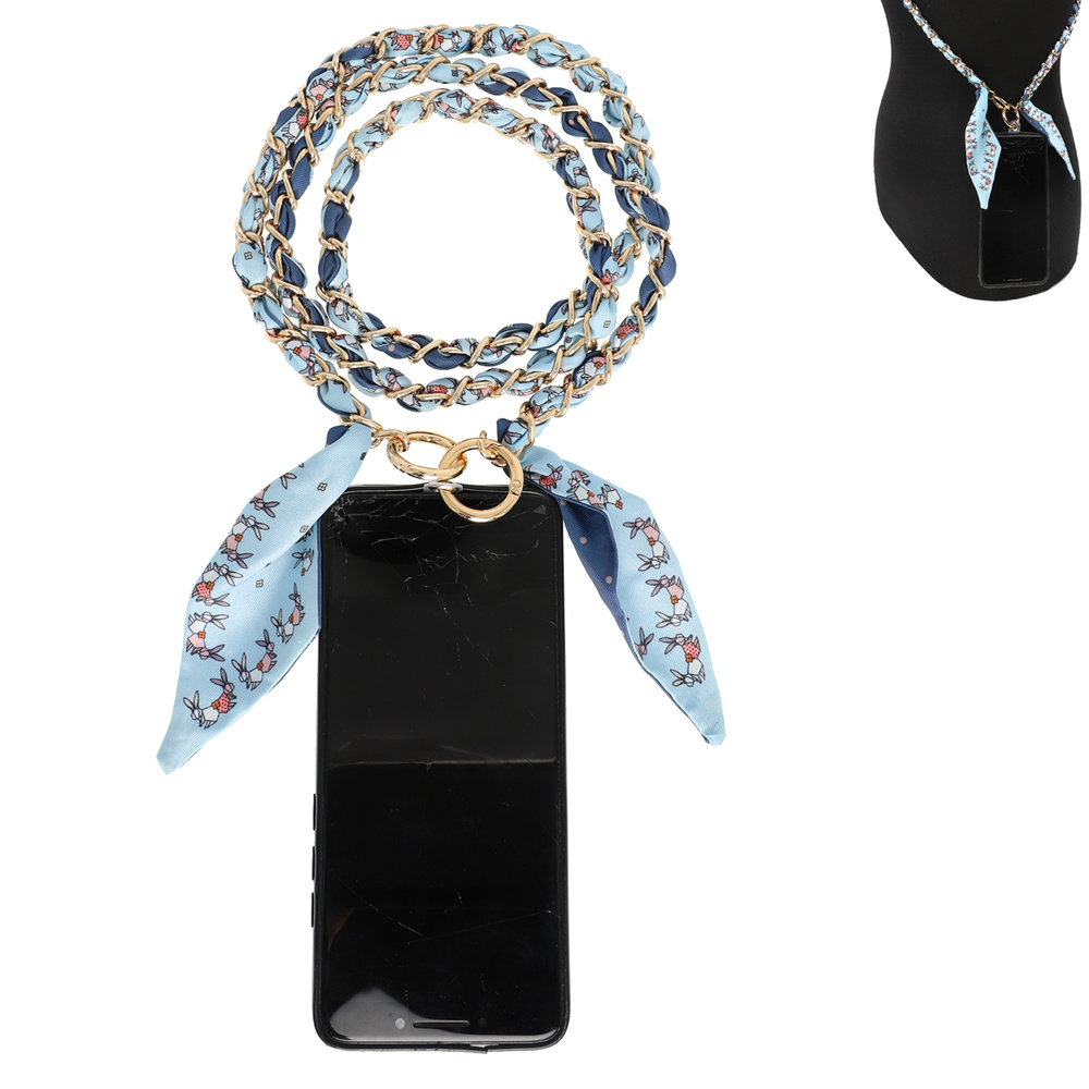 LUXURY SATIN PRINTED SCARF BRAIDED UNIVERSAL CELLPHONE CROSSBODY LANYARD STRAP ATTACHMENT WITH LOBSTER CLAW