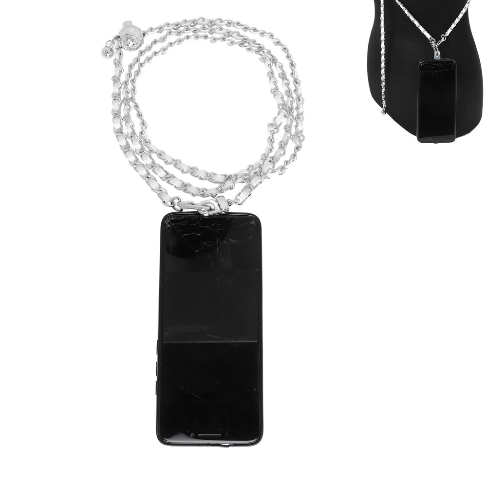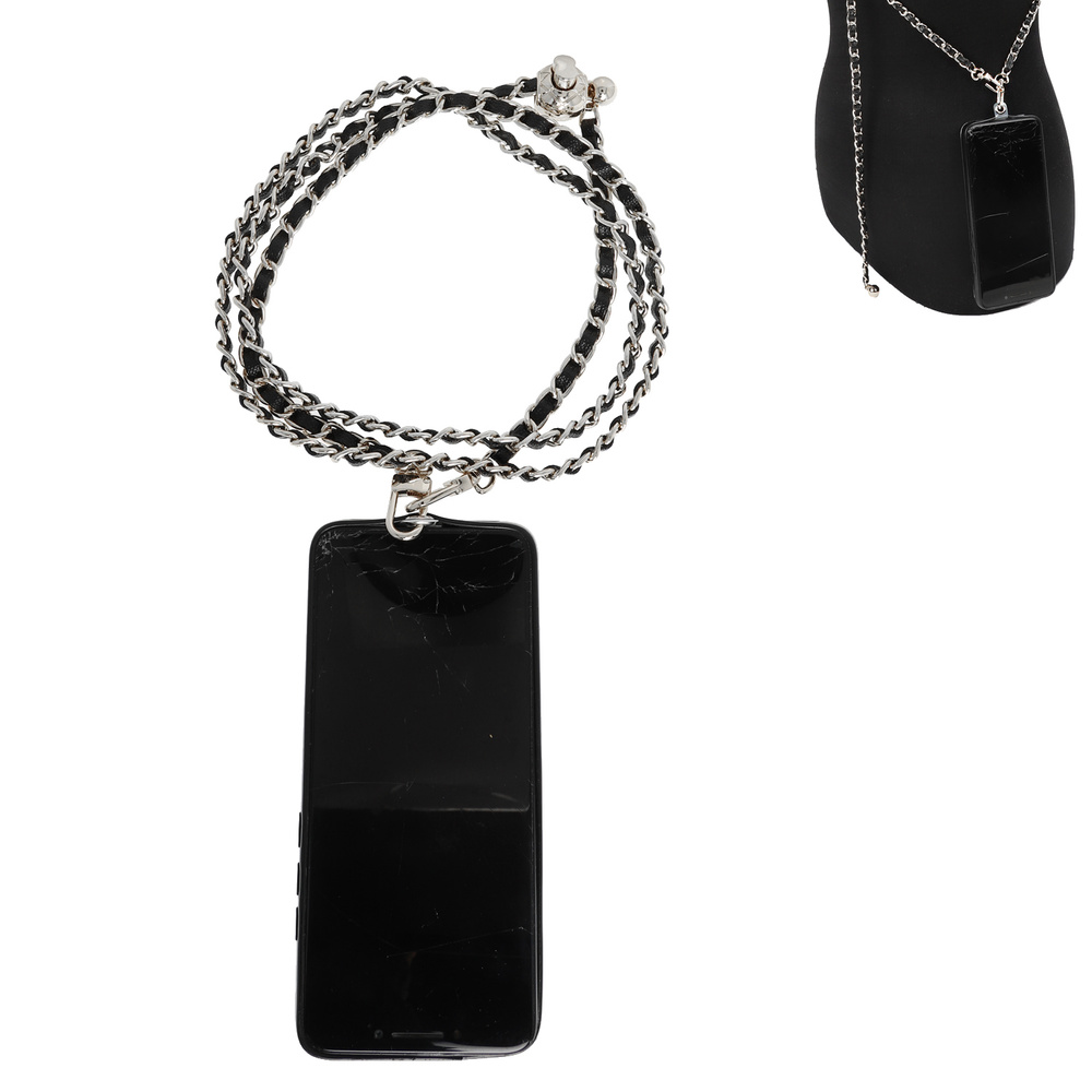 FAUX LEATHER BRAIDED LINK CHAIN CROSSBODY LANYARD STRAP WITH UNIVERSAL CELLPHONE ATTACHMENT