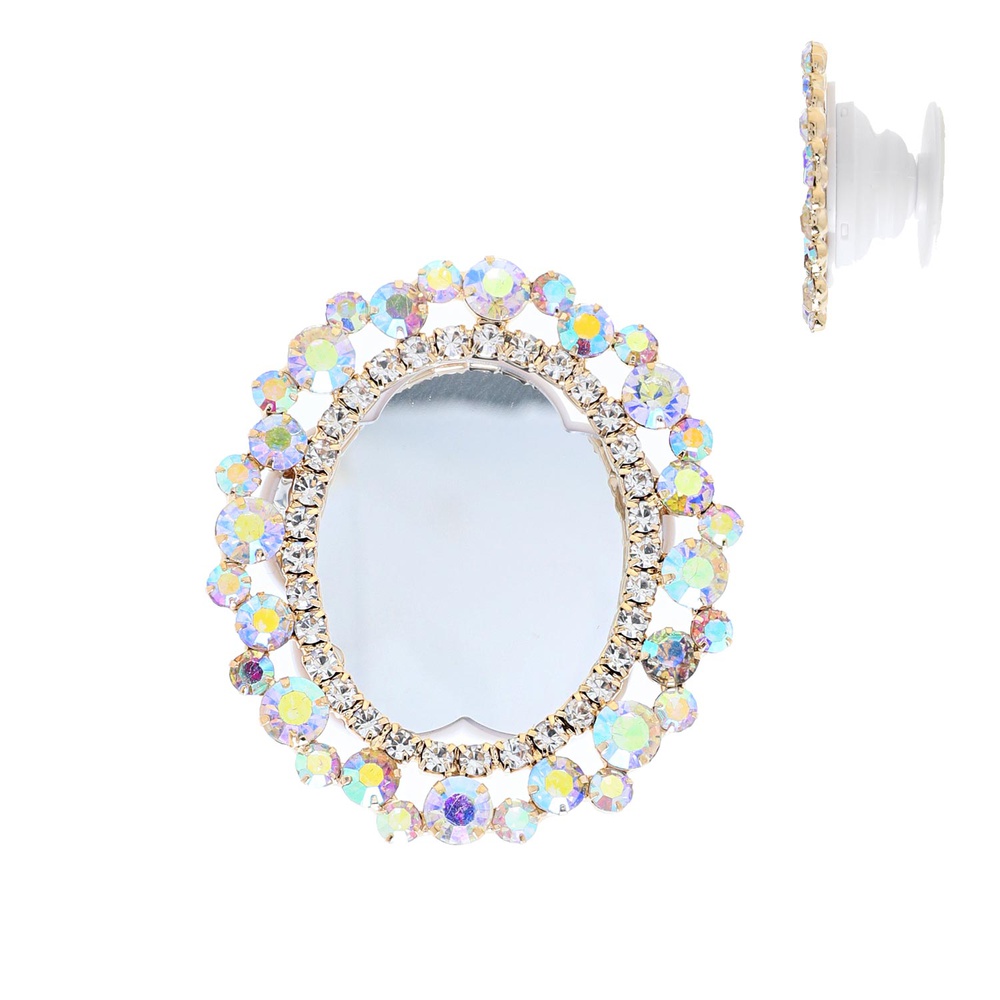 CRYSTAL RHINESTONE OVAL MIRROR DUAL POP SOCKET PHONE GRIP AND STAND