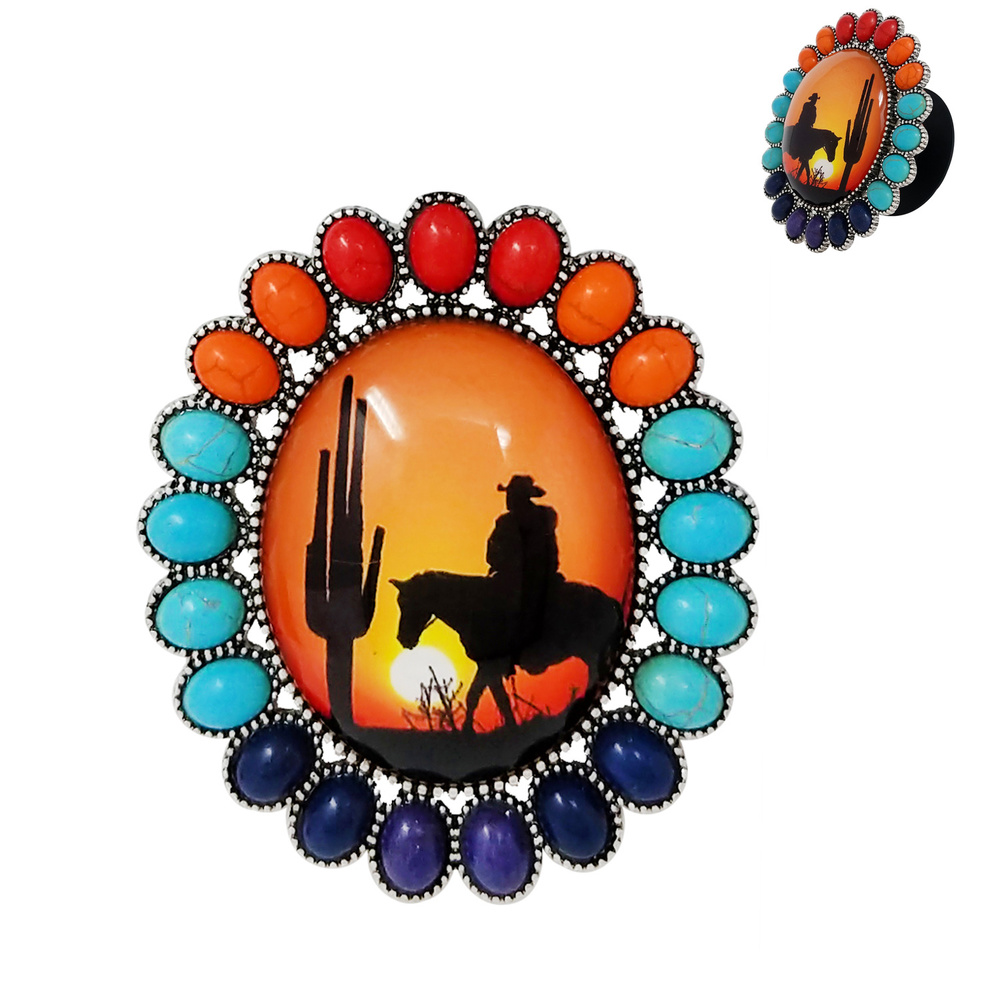 WESTERN STEER HEAD OVAL PHONE GRIP PHONE HOLDER WITH SEMI STONE MARCASITE EDGE