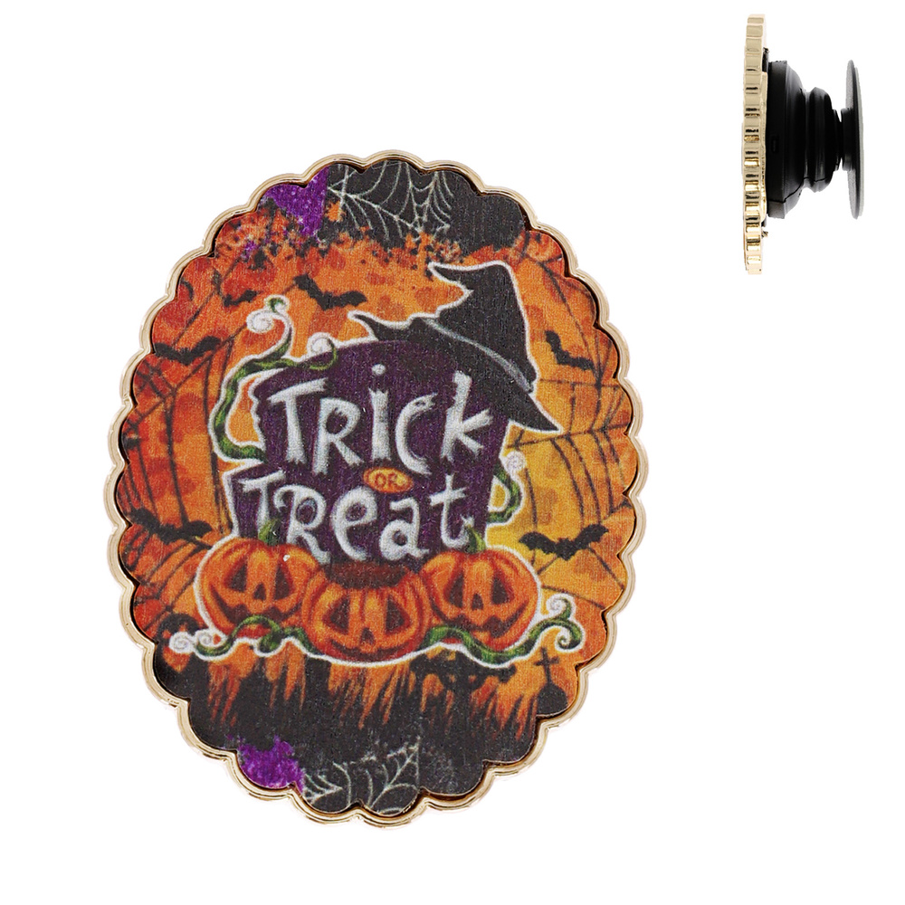 TRICK OR TREAT - HALLOWEEN WOOD PRINTED SCALLOPED FRAME DUAL POP SOCKET PHONE GRIP AND STAND
