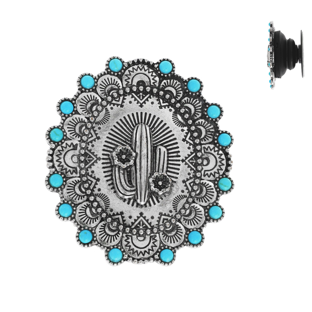 CACTUS-WESTERN THEMED TURQUOISE SEMI STONE OVAL POP SOCKET PHONE GRIP AND STAND