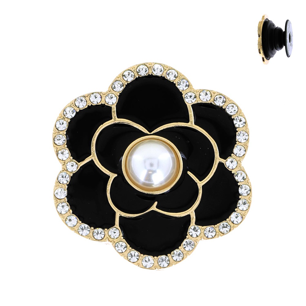 PEARL ENAMEL COATED CRYSTAL PAVE FLOWER SHAPED DUAL POP SOCKET PHONE GRIP AND STAND