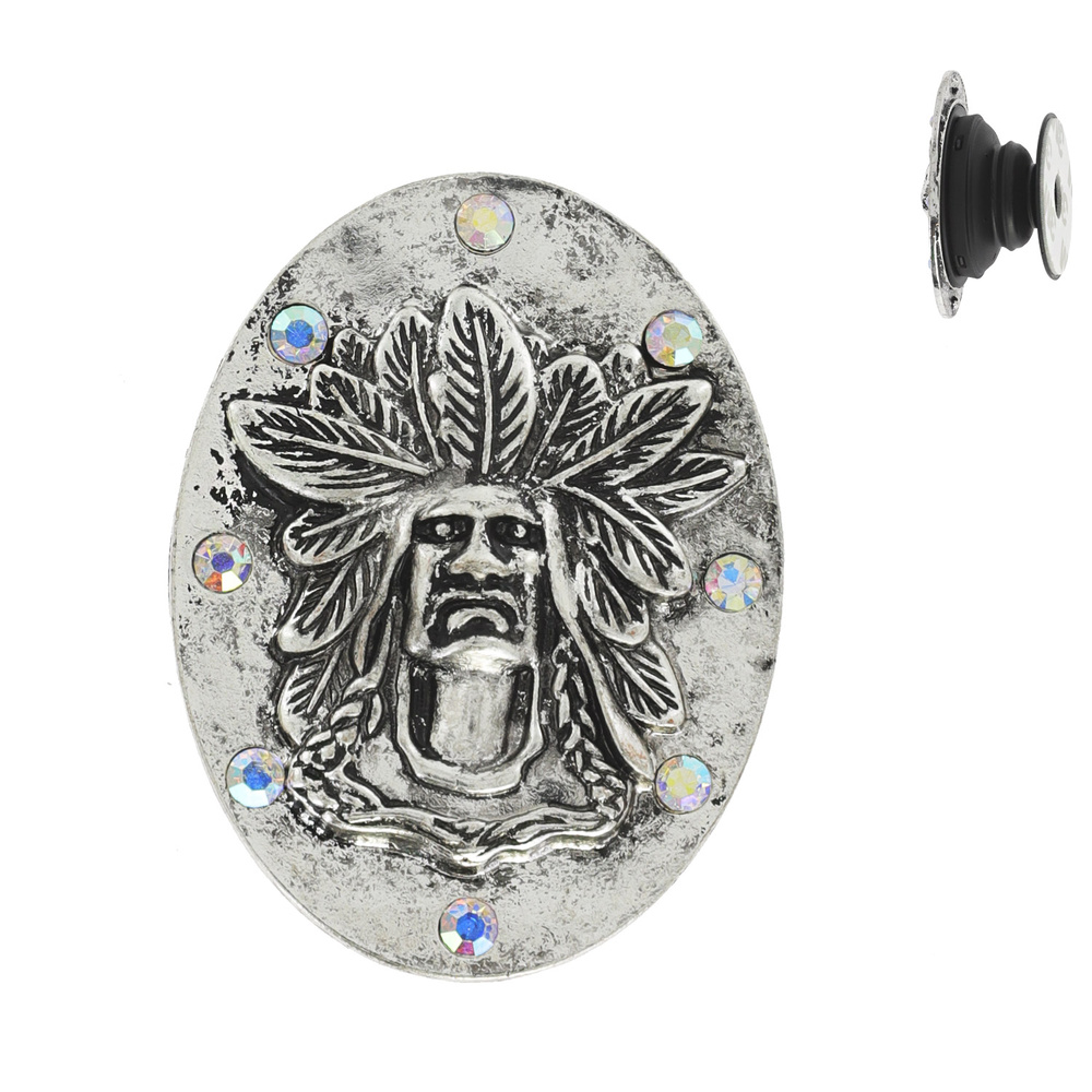 Native American Chief -western Themed Jeweled Oval Pop Socket Phone Grip And Stand